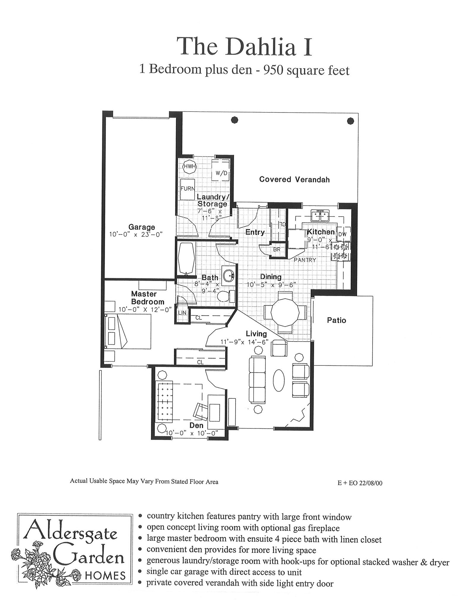 - The Dahlia – one bedroom plus den at 950 square feet