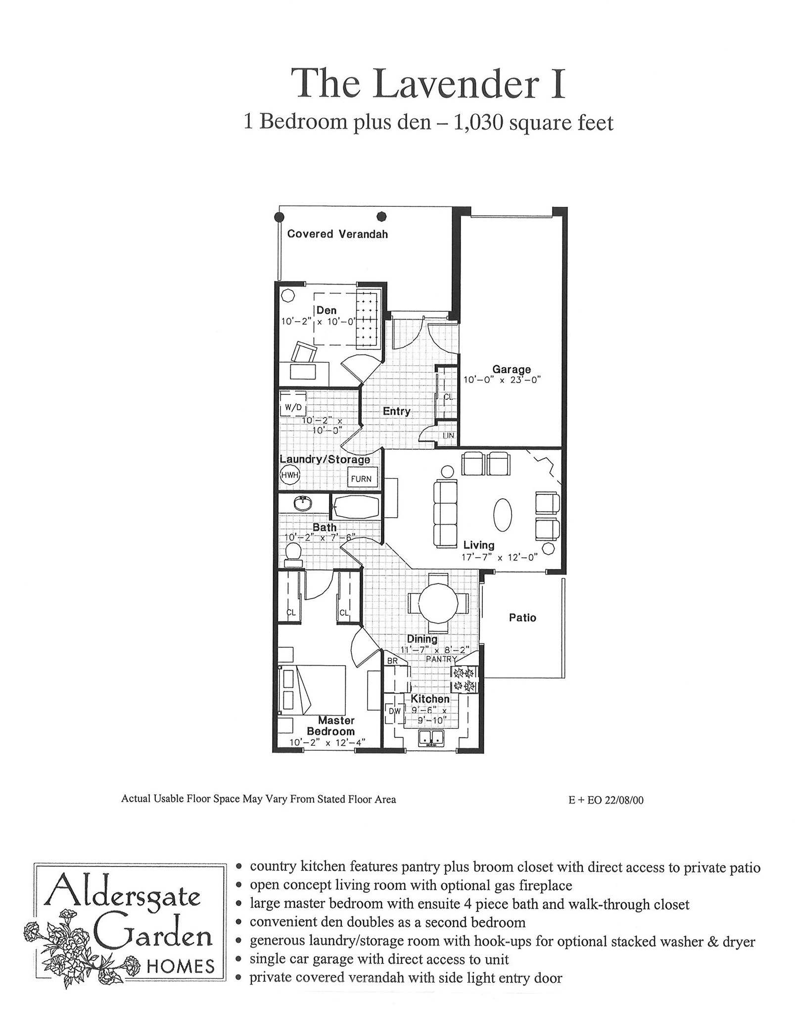 - The Lavender – one bedroom plus den at 1030 square feet