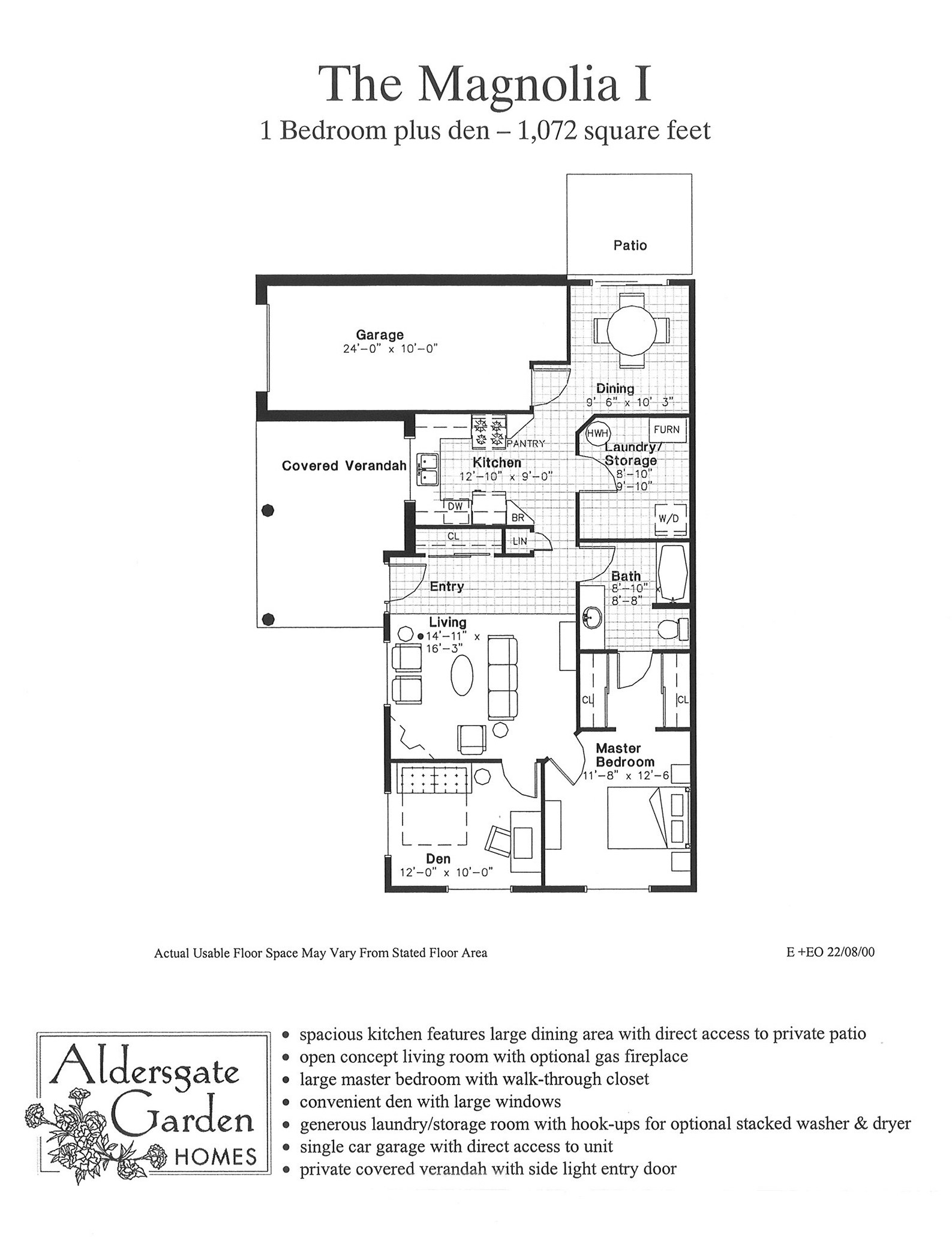 - The Magnolia – one bedroom plus den at 1072 square feet